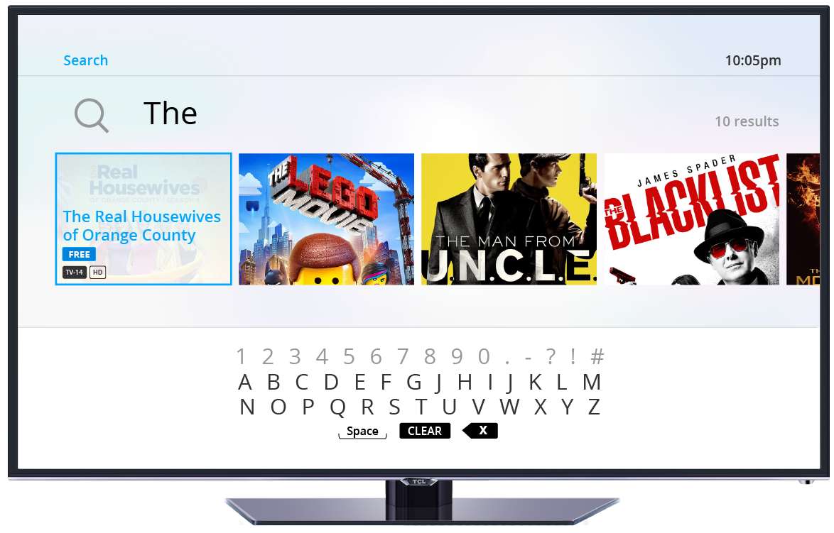 The keyboard was an interesting problem we had in this search design when we accounted for grouped assets and multiple asset sizes, which can happen for a few of our cable operators. Legacy artwork is portrait orientation, newer catalogs are starting to offer multiple sizes such as landscape and portrait. We found that when combining asset sizes in row and auto setting height with grouped assets called out with a stacked graphic the UI was pushing our keyboard below the view safe content area.